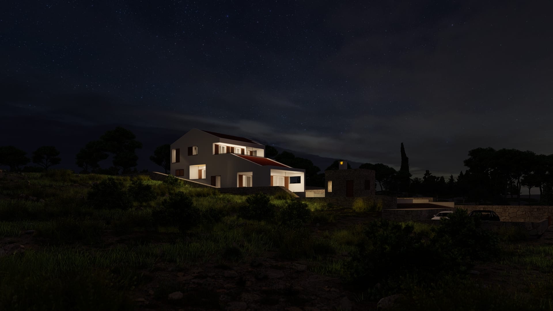Stambena građevina s bazenom Sumartin l Arhitektonsko projektiranje Urbanističko projektiranje Stručni nadzor građenja Projektantski nadzor Dizajn interijera Konzalting